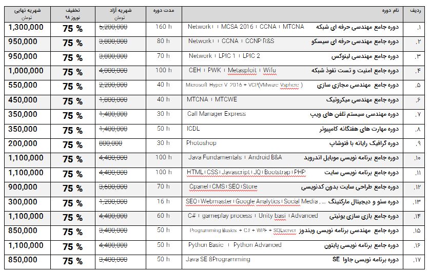 در این بازه زمانی کلیه متقاضیان می توانند دوره مورد نظر خود را با 75% تخفیف رزرو نمایند